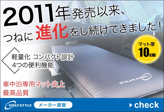 車中泊を楽しむうえで、最も重要なポイントのひとつが「寝心地」です。シートを倒しただけの状態では段差や硬さが気になり、十分な休息が取れないこともあります。自分の経験ではキャンプ用の8cm厚のインフレータブルマットでもシートの段差は解消されませんでした。そんな課題を解決するのが、株式会社オンリースタイルが提供する「車中泊専用マット」です。